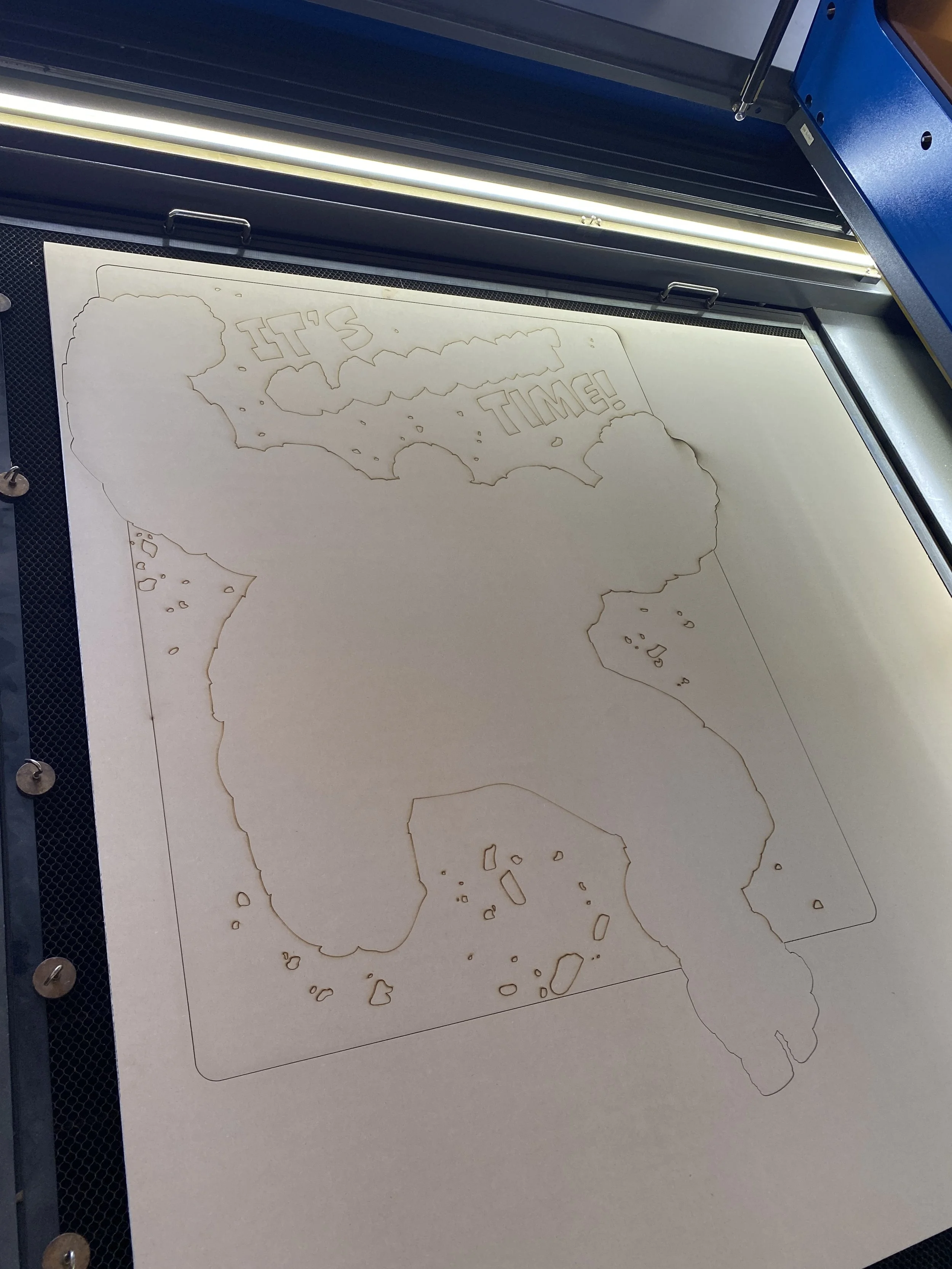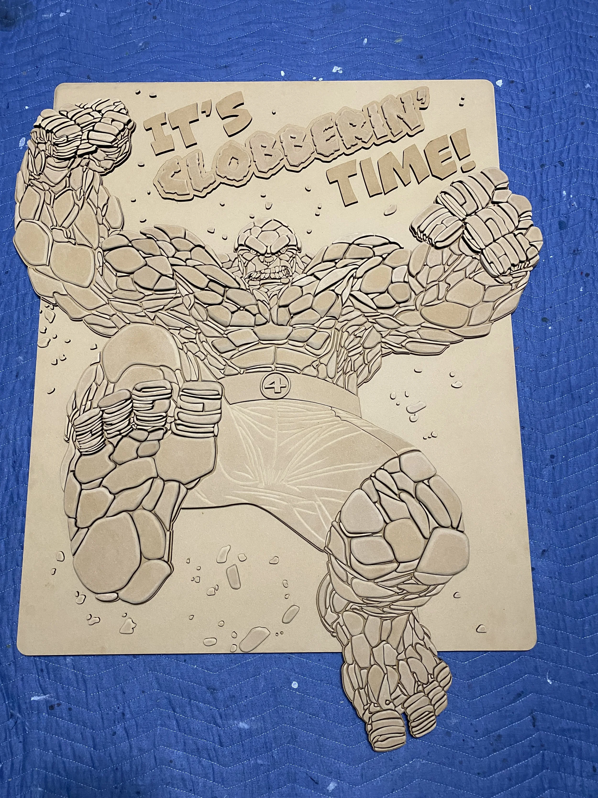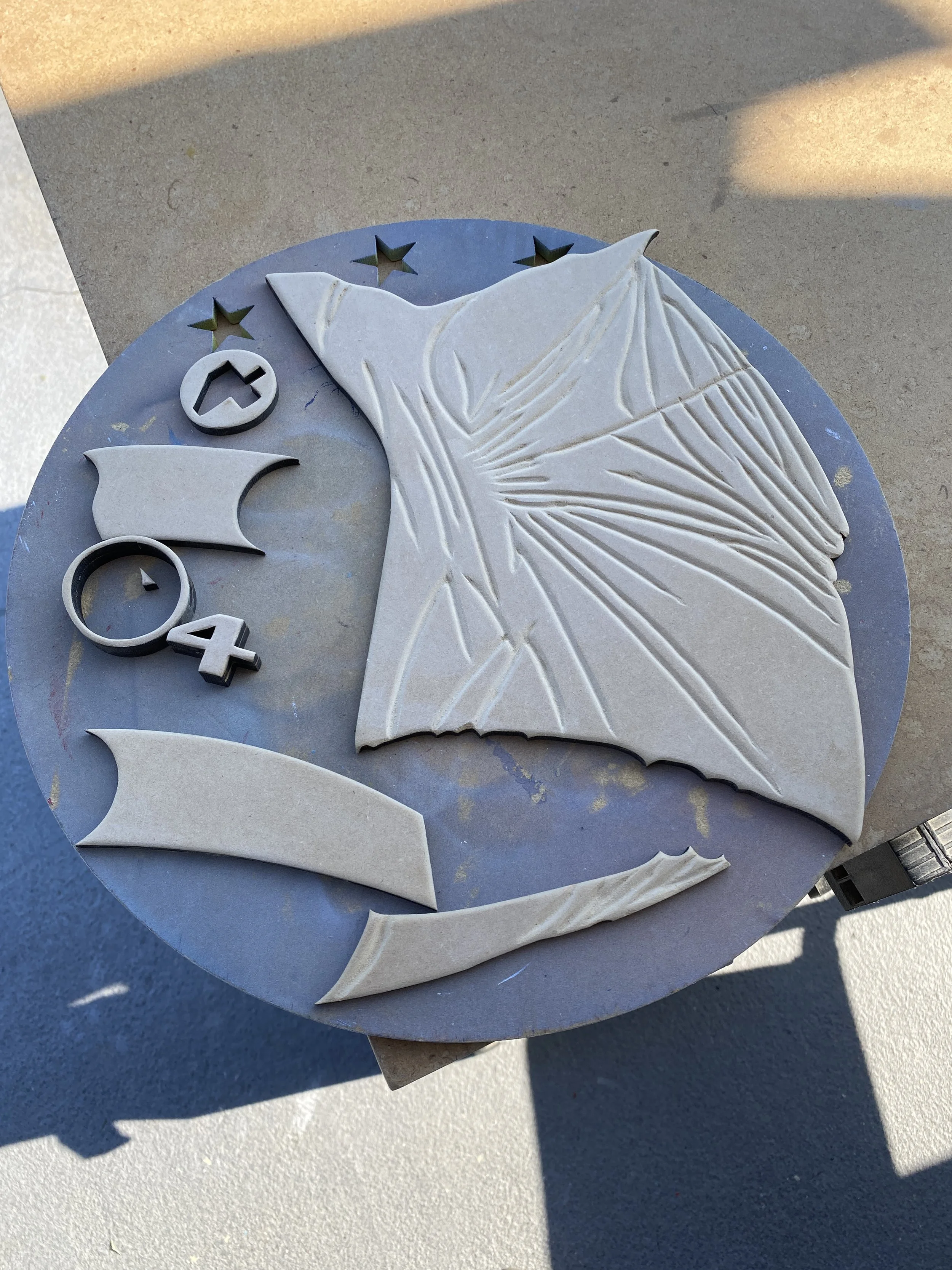 Each piece is shaped until it’s just right. Using a mix of tools, we cut, carve, and refine—sometimes even removing material to create bold effects. For this design, flat MDF transforms into rugged, 3D rocks that bring the artwork to life.