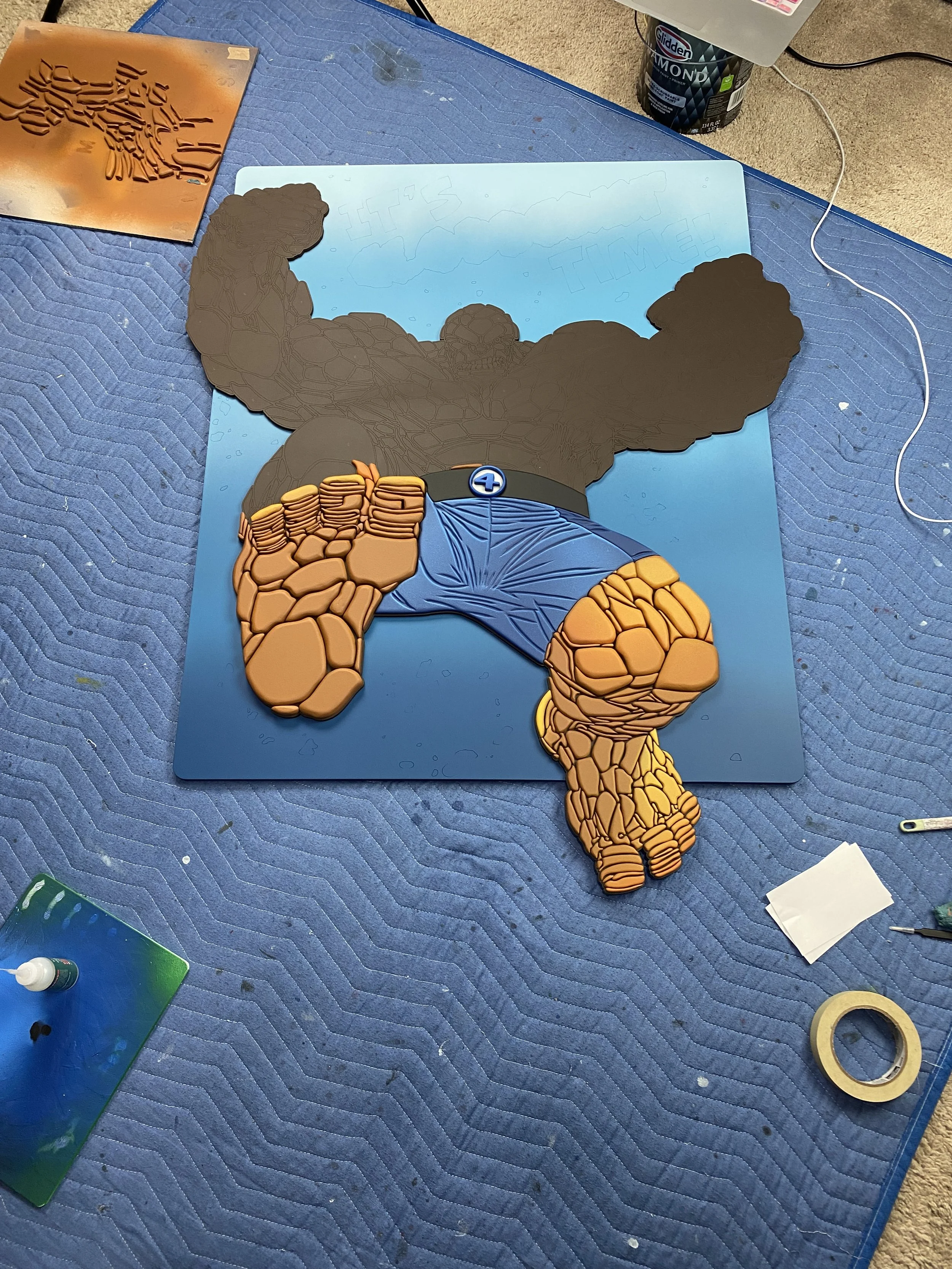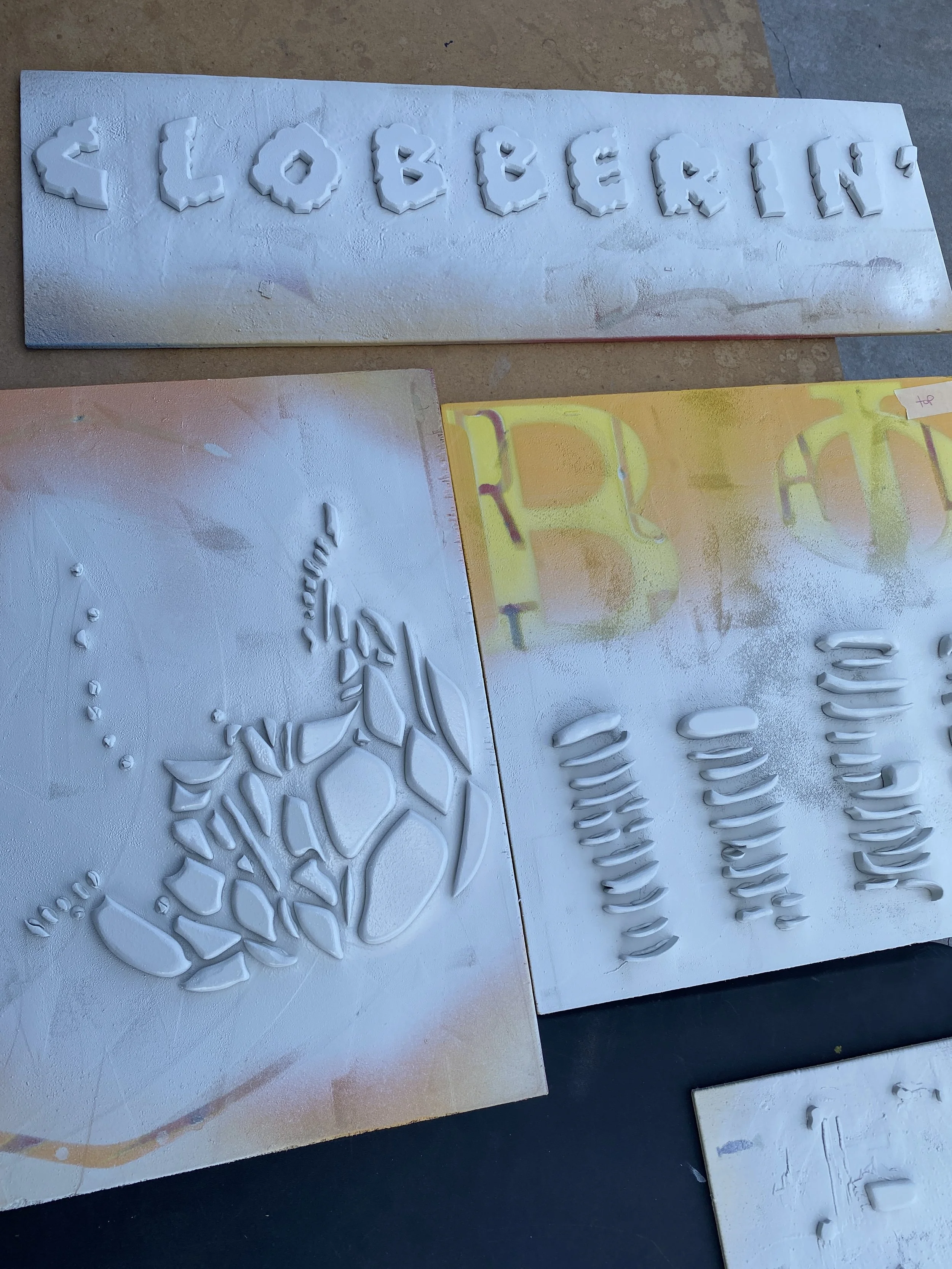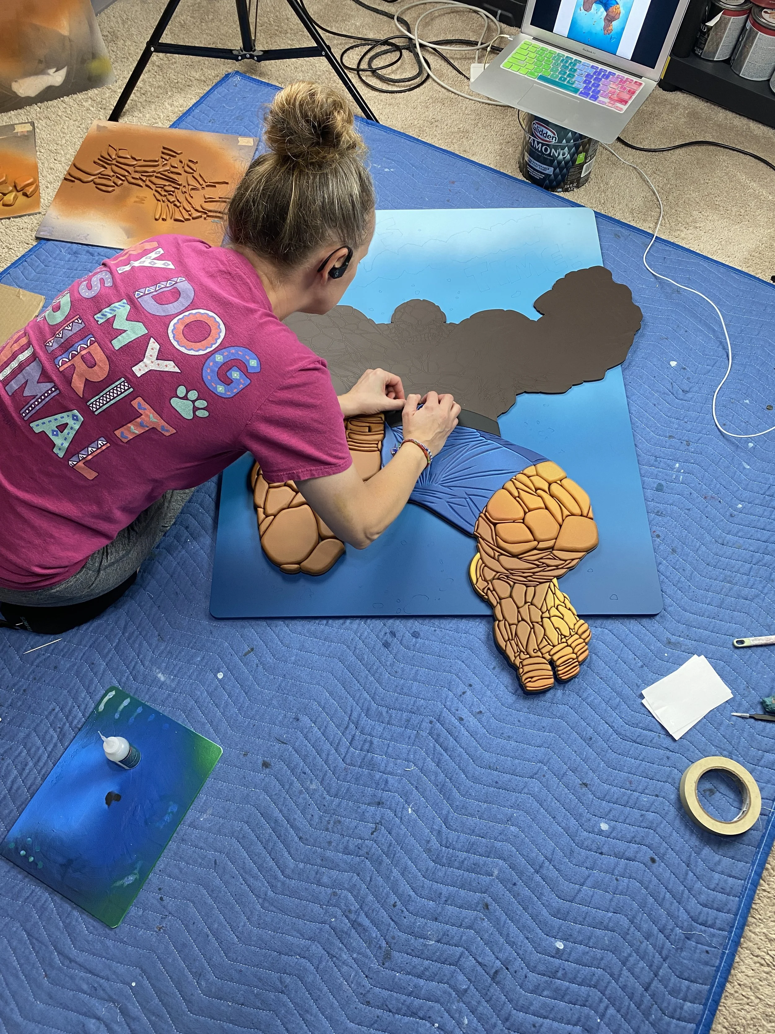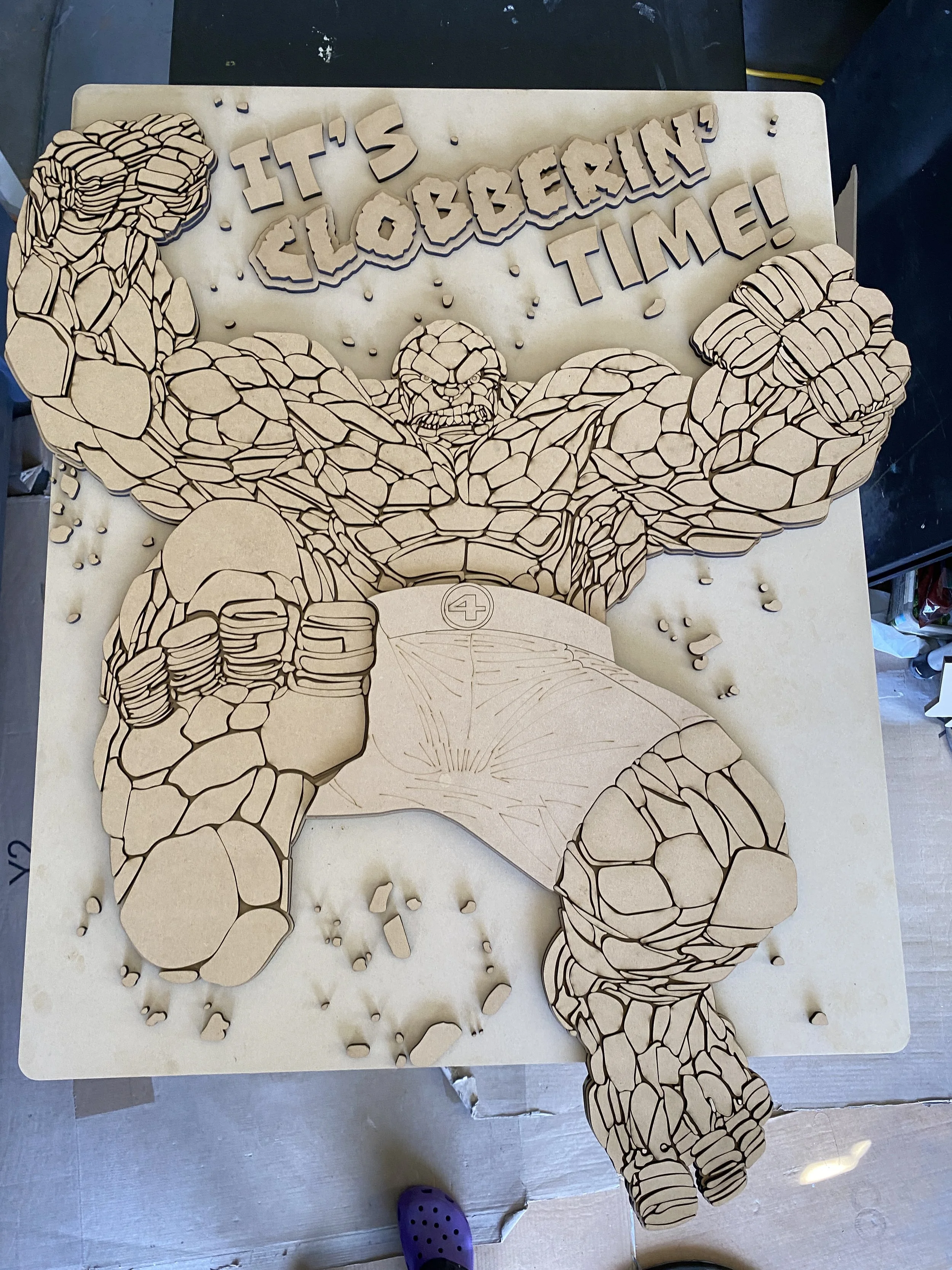 Each piece is shaped until it’s just right. Using a mix of tools, we cut, carve, and refine—sometimes even removing material to create bold effects. For this design, flat MDF transforms into rugged, 3D rocks that bring the artwork to life.