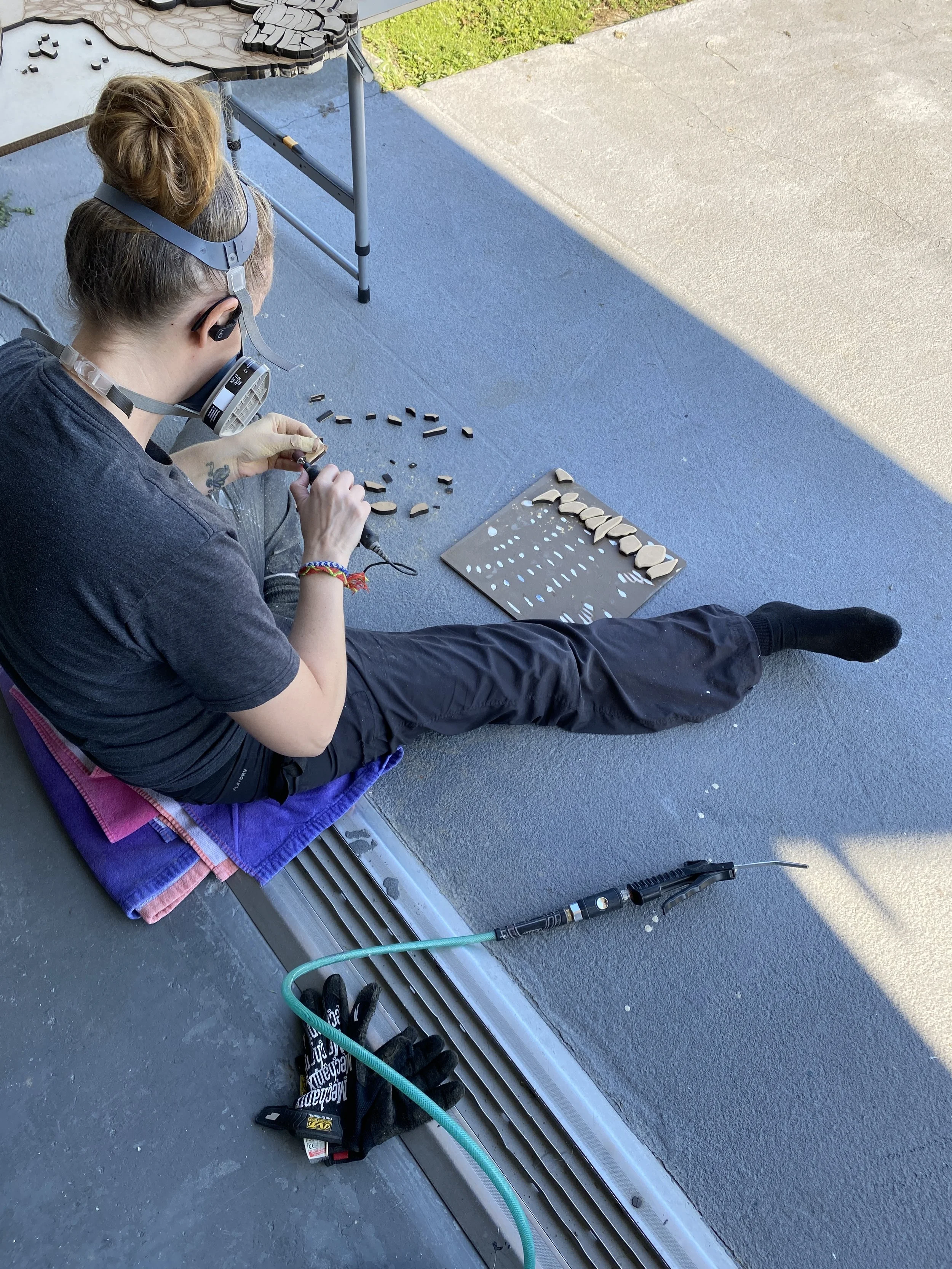 With the rough cut complete and every piece in place, the sign’s depth and dimension start to come alive. This is where Stacey’s artistic eye kicks in—spotting where extra layers will elevate the design and transform it into a true standout piece.